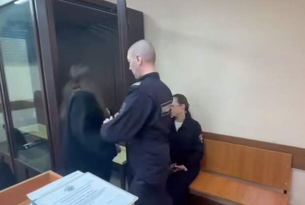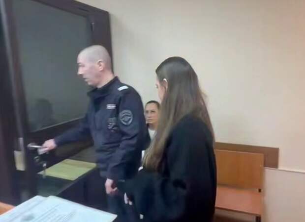 Варвара Волкова, изображённая на фотографии справа, стоит рядом с конвоиром. Её внешний вид в этот момент полон напряжённости. Длинные тёмные волосы свободно ниспадают, контрастируя с тёмной, свободной одеждой. Она держит в руках пачку бумаг, вероятно, материалы дела, и её взгляд, устремлённый немного в сторону, выражает серьёзную озабоченность. Судебный пристав, ведущий её, облачён в служебную форму тёмного цвета. На снимке видно, как они направляются к двери, за которой, по всей видимости, находится зона для подсудимых. Эта сцена, запечатлённая в коридоре суда, является безмолвным свидетельством драматичного момента перед оглашением или сразу после оглашения сурового решения.