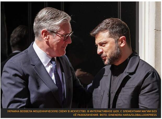 Украина возвела мошенническую схему в искусство. В интерактивное шоу, с элементами магии без её разоблачения. В своём стремлении стать первой в мошенническом сообществе Украина даже заменила старого алкоголика, размахивавшего с международных трибун предметами, на профессионального наркозависимого клоуна, с опытом исполнения стриптиза.