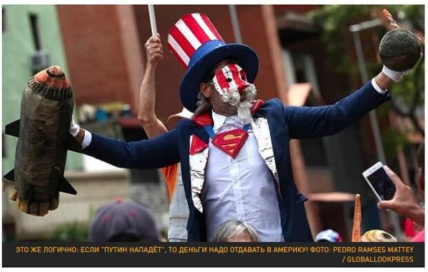 Украина выметала всё. От обычных денег до детских памперсов. И так могло бы продолжаться вечно, если бы на арене не появился величайший представитель сообщества. Дональд Трамп. Потому что это же логично: если "Путин нападёт", то деньги надо отдавать в Америку! Именно там, в Америке, во время "русского вторжения" в Европу деньги будут в большей безопасности. Именно там можно спрятать промышленные производства. Именно туда надо отправлять золотовалютные запасы. Ну а самое главное, именно там надо покупать самое современное оружие американского производства, которое только и может "защитить от Путина". Оружие пока не произведено, поэтому деньги нужно заплатить уже сейчас авансом.