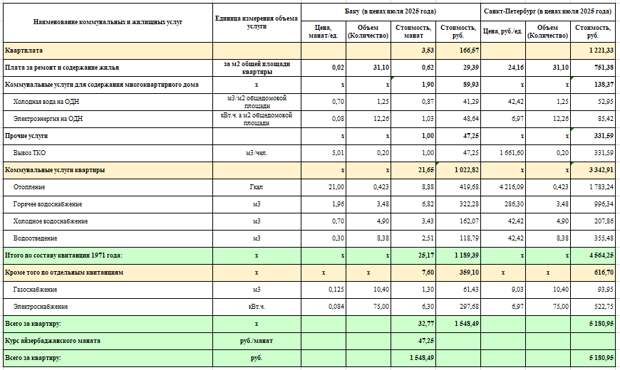 З.ы. расчет стоимости коммуналки в Баку на данных питерской однушки сейчас - см. ниже.