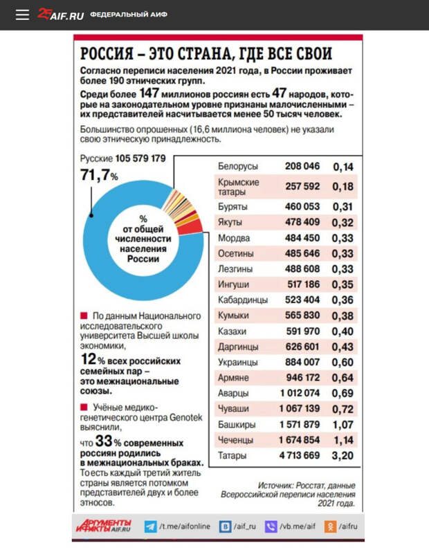 Главная же "вишенка на торте", как заметил русский патриот, режиссёр и публицист Егор Холмогоров, - инфографика в статье. В ней утверждается, что "треть жителей России имеет смешанное происхождение", а источником этих цифр указана частная компания "Генотек".