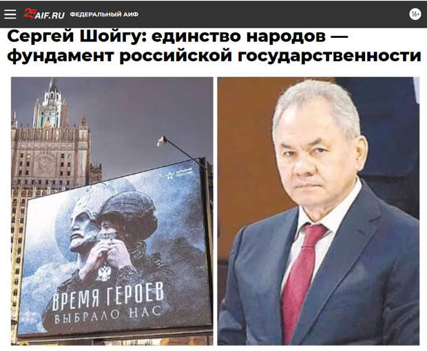 Статья Сергея Шойгу, опубликованная в "Аргументах и фактах", говорит о России как о "стране, где все свои, какими бы разными мы ни были", утверждая, что "наша модель межнациональных отношений является примером для других государств". В его тексте подчёркивается мысль, что многонациональность России - не уязвимость, а сила, и что "коллективный Запад не понимает природы российских межнациональных отношений, духовной, нравственной силы, единства многонационального народа". Само по себе это верно и привычно для отечественной риторики. Но дальше начинается тонкая подмена смыслов.