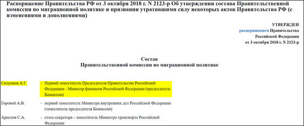 Правительственную комиссию по миграционной политике возглавлял Антон Силуанов. Скриншот страницы сайта base.garant.ru