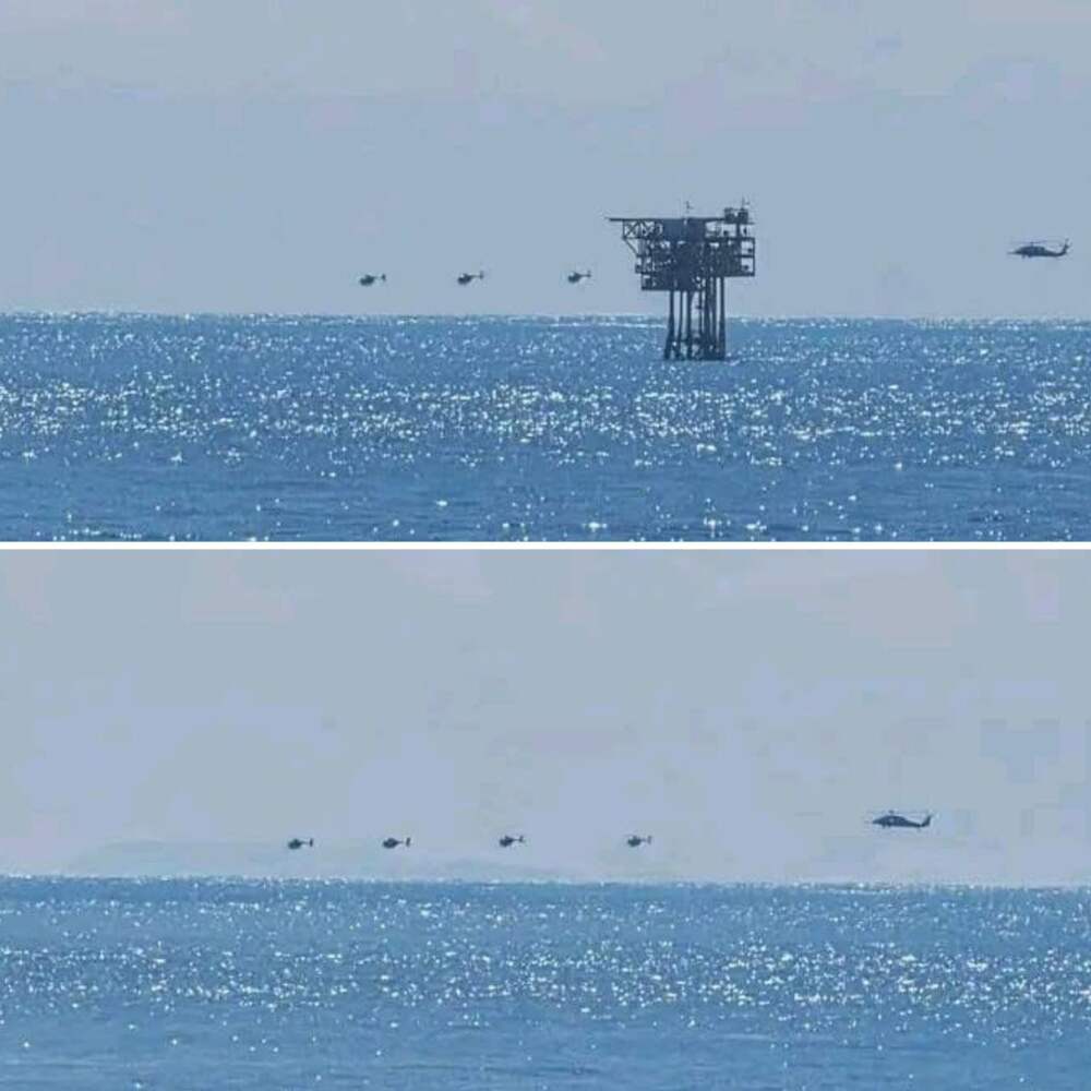 Вертолёты, предположительно, действуют во взаимодействии с передовой плавучей базой ВМС США, ранее